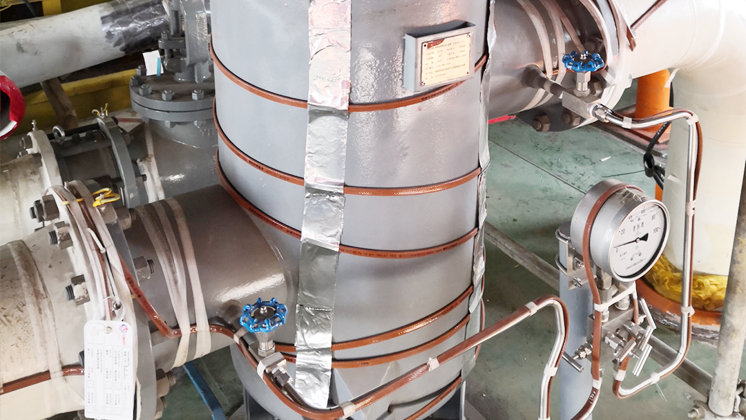 在工藝介質(zhì)的存儲和傳輸過程中散熱損失通常不可避免,散熱就意味著設(shè)備和管道中介質(zhì)溫度的降低。電伴熱帶作為一種可以精確調(diào)節(jié)溫度、溫度均勻、保溫效果良好的產(chǎn)品成為必不可少的選擇。其保溫原理是通過電熱傳遞補(bǔ)償其在工藝介質(zhì)的存儲和傳輸過程中散熱損失。通過散熱損失計算出電伴熱總量,確定伴熱帶型號。影響設(shè)備防凍保溫?zé)釗p失的因素有哪些呢?