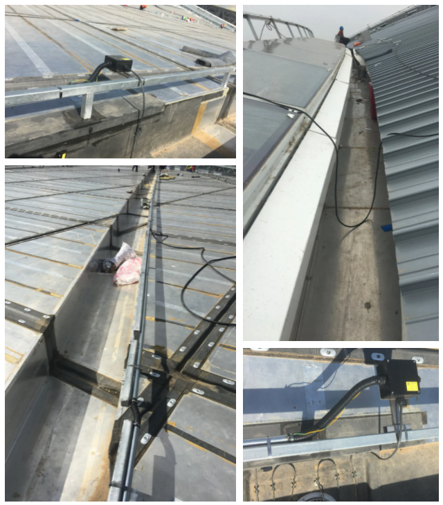 該項目中使用的是佳宏專門為融雪應(yīng)用研發(fā)的自調(diào)控電伴熱帶型號為8HTLe-CT,25W/m (10℃時)伴熱線及其配套的伴熱系統(tǒng)附件,配有濕度傳感器和溫度傳感器以及控制器。適用于屋頂、天溝和雨水管的融冰除雪。該伴熱帶的優(yōu)勢是并聯(lián)結(jié)構(gòu),可現(xiàn)場裁剪,安裝方便,且可以交叉重疊不會出現(xiàn)過熱。根據(jù)現(xiàn)場溫度自行調(diào)節(jié)輸出功率,使得更精確,更節(jié)能。